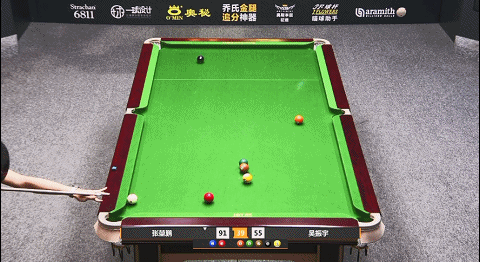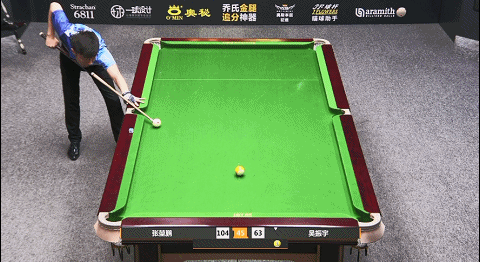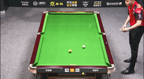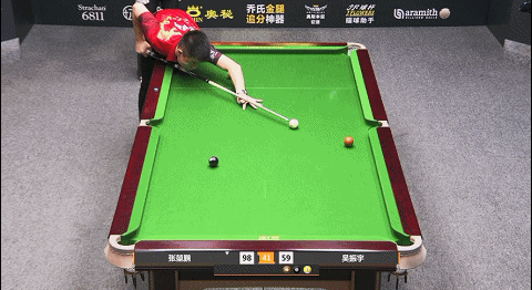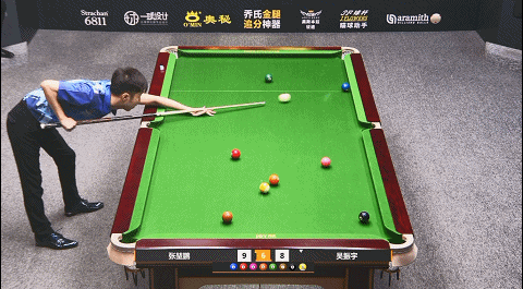 第33局,张堃鹏8号球翻袋,随后拿下小金,比分73:55