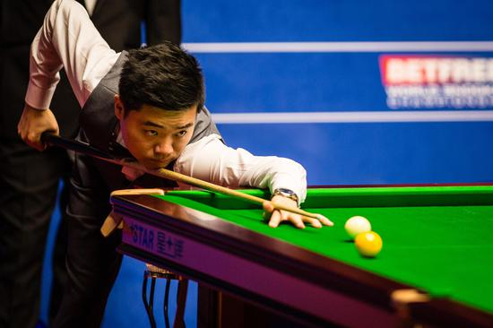 ▲丁俊晖在克鲁斯堡剧院参加2017年斯诺克世锦赛 资料图据 IC Photo