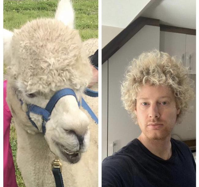 罗伯逊近期没有将头发拉直,以一头卷发形象参赛,有人将他这个造型和羊驼进行了对比,罗伯逊显然很喜欢这个趣图。