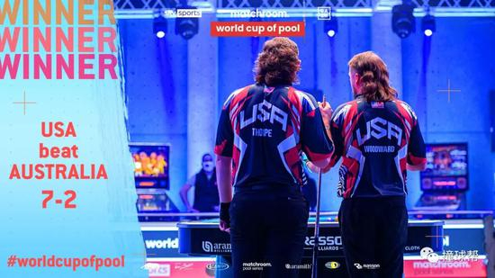 美国7-2击败澳大利亚。本次比赛,美国没有了范伯宁,小弟伍德沃德首度搭档索普,而澳大利亚阵容方面,萨基奇的搭档也换成了马里奥·何以外赛事的唯一中国元素李孟(Ivan Li)。美国双星配合默契,始终谈笑风生,最终7-2轻取过关。