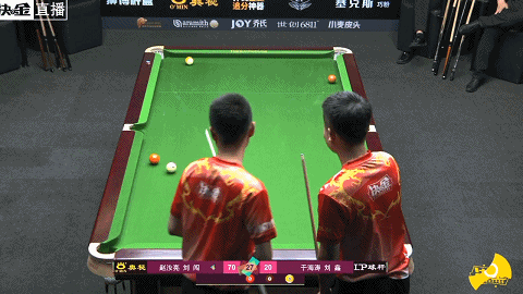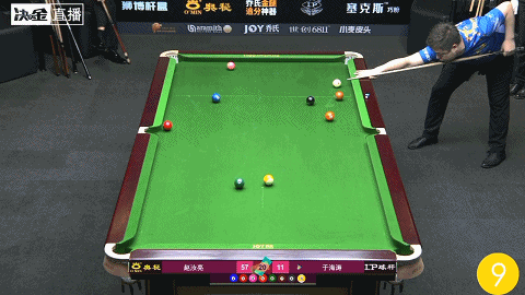 第6局,刘闯打进关键的8号球,拿下小金,14:5拉开分差
