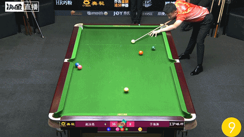 第12局,赵汝亮打进关键的翻袋球,拿下本场首杆大金,33:6继续扩大分差
