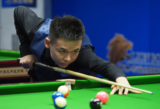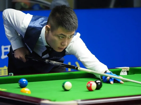 乔氏台球梦之队冯泽源在比赛中与何文冲上演了双赛点大战。开局二人互相接清,接下来几局何文冲连续打出2炸1接,6:4暂时领先。冯泽源开始反击,3炸1接后,10:7反超比分。第22局,冯泽源1杆接清率先来到赛点,但何文冲紧接着拿下1炸1接,双方比分12:12。最后一局,冯泽源成功打出一杆清台,13:12进入胜部。