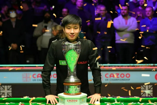 2021“Cazoo”斯诺克英锦赛北京时间12月6日凌晨在英国约克巴比肯中心落下帷幕,魅力四射的中国年轻人赵心童凭借杰出的比赛风格以10比5击败比利时球员卢卡·布雷塞尔,夺得首个职业比赛冠军。