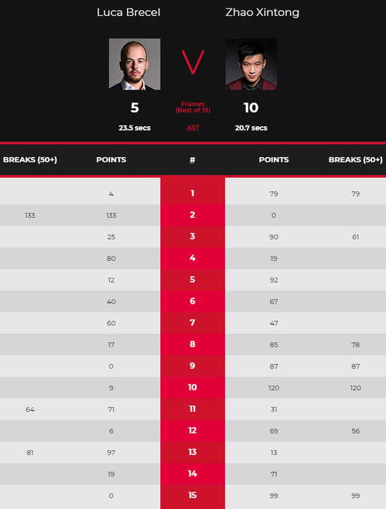 比利时的卢卡·布雷塞尔则是首位参加“三大赛”决赛的欧洲大陆选手,但曾经在2017年夺得中国锦标赛的他错过了拿到排名赛第2冠的机会。在半决赛凭借优异的发挥以6比4战胜凯伦·威尔逊后,26岁的卢卡未能在决赛中再度拿出顶尖发挥。凭借8万英镑亚军奖金,卢卡的排名亦从第40位跃升至第18位。