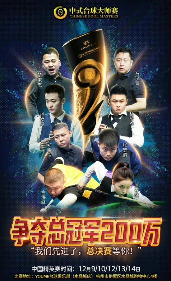 大师赛十五周年,不忘初心砥砺前行。在全球亿万中式台球迷的支持下,这项中国原创运动已经风靡全球!本赛季中式台球大师赛年终总决赛更是将冠军奖金升级为200万,赛场上的热血角逐将变得更加激烈!