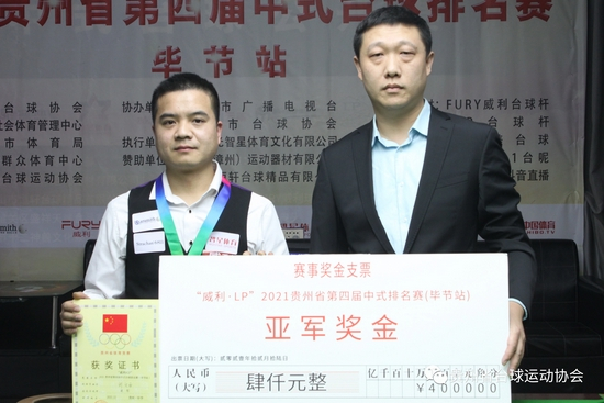 颁奖嘉宾:贵州省台球运动协会主席、贵州华光智星体育文化有限公司董事长 寇思翔(右)