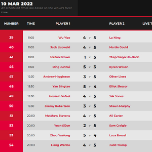 2022斯诺克土耳其大师赛第5比赛日赛程