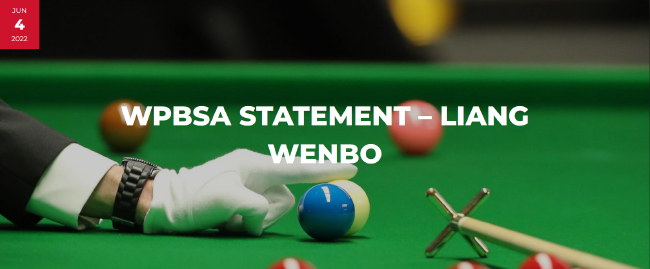 当地时间2022年6月3日,世台联独立纪律委员会决定给予梁文博“禁止参加所有斯诺克比赛四个月,直至2022年8月1日止,并支付1000英镑的听证费用”的处罚——因为独立纪律委员会认定其违反了WPBSA会员规则以及他的球员与WSL的合同。