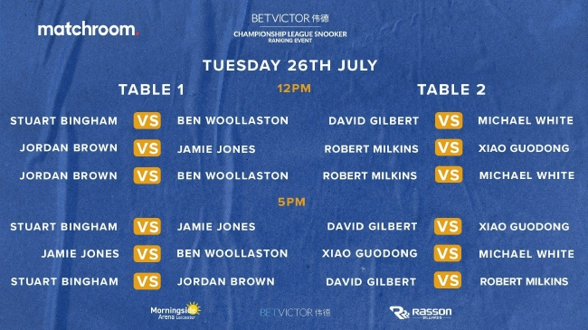 2022斯诺克冠军联赛排名赛版本第二阶段A组赛程