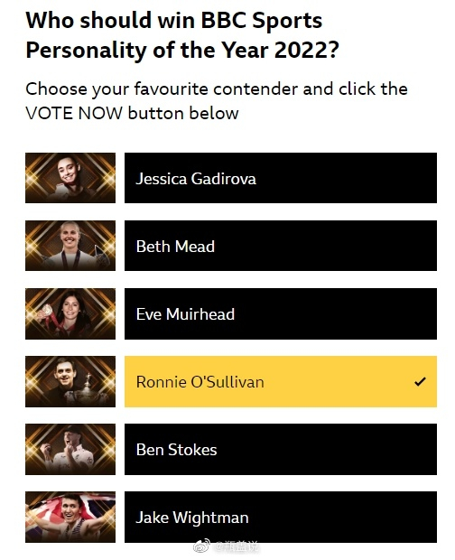 2022BBC年度体育人物奖的提名于当地时间12月20日宣布了提名名单。斯诺克传奇罗尼-奥沙利文职业生涯第2次入围了该项提名,其他入围的运动员包括女子体操选手杰西卡-加迪洛娃、女足运动员贝丝-米德、冰壶运动员伊芙-穆尔海德、板球运动员本-斯托克斯和田径运动员杰克-怀特曼。