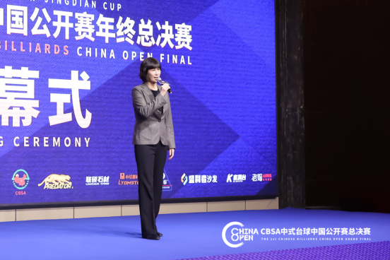 辽宁省体育局党组成员、辽宁省体育局副局长张越红在开幕式发表致辞时表示“”本次比赛是葫芦岛市承办高水平赛事活动的一次大胆尝试,赛事为城市增添无限的色彩和活力,是践行“打造高品质文体旅融合发展示范地”的生动实践。首届中式台球中国公开赛总决赛在辽宁省葫芦岛市隆重开幕,这是中国台球协会对辽宁体育工作的支持和信任!