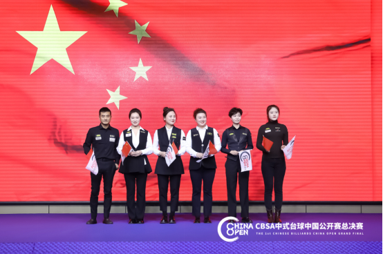 最后,世界冠军潘晓婷与各位领导一同来到台球桌前,参与本次大赛的启动仪式,为比赛开杆!