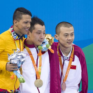 与许庆同池作战的贾红光亦在该项目中为中国队拼得一枚铜牌。10日,国歌在泳池旁边三度奏响,16岁的徐夕涵在自己的首次残奥之行就以女子S5级50米蝶泳的金牌为生涯添上了浓墨重彩的一笔。彭秋萍在女子S3级50米仰泳中与队友孟国芬包揽了该项目的金牌与银牌,在决赛中,她把自己预赛中刚刚创造的49秒91的世界纪录再度刷新至48秒49。彭秋萍说,今天赛场里的热烈气氛给了她好运与鼓励。