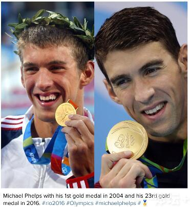 另一张则是对比合成照,左侧的菲尔普斯,2004年雅典奥运会第一次获得奥运金牌的模样,右侧的菲尔普斯,则是展示他最后一面奥运金牌(里约奥运会男子4乘100混)的场景。模样虽然从青涩到老成,但不变的依然是金牌的十足分量。这张合成照,正好和另一张合成照在同一行内,就是迪卡普里奥和温丝莱特在奥斯卡颁奖典礼上的相视一笑,对比杰克和露丝在泰坦尼克的深情对望,虐心画面让人不胜唏嘘。此外美国女子体操队庆祝拿下里约奥运团体冠军的照片也在其中。