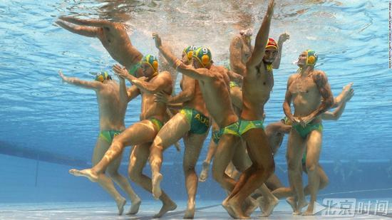 水球运动则有着“水中橄榄球”之称,激烈程度可见一斑。一位匈牙利水球运动员曾经形容他们在比赛中“经常抓住对方运动员拳打脚踢”。最后一张图片中是在水下挤成一团的澳大利亚水球队。(北京时间)