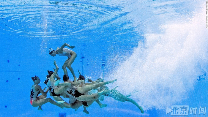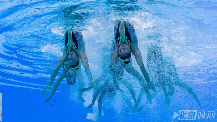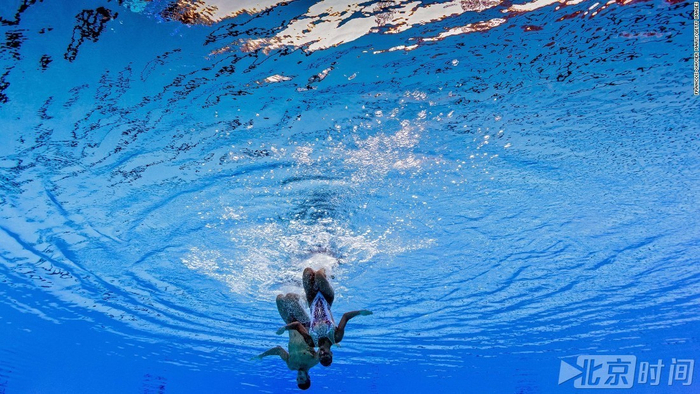 从水下视角来看世锦赛,给人一种超现实的感觉。同时照片也记录了运动员在水下拼搏时肢体舒展的瞬间,可谓力量与柔美共存,美不胜收。水下世界给予我们的视觉享受丝毫不输水面上的比赛。
