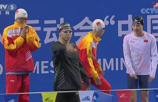 但这并没有影响中国队的发挥。当比赛再次开始后,第一棒的汪顺依旧游出了第一的成绩。最终,由他和刘绍烽、何峻毅、季新杰领衔的中国队霸气夺冠,打破了国际军事体育理事会纪录。