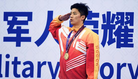 比赛结束后,全场观众高喊“汪顺”,随后他向看台上的官兵敬了一个军礼,这一幕也被网友成为军运会上的“最帅军礼”。对此,汪顺只是低调的表示:“谢谢大家,我会继续努力的!”