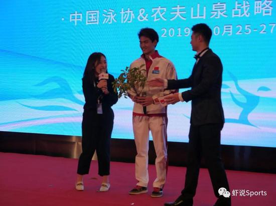 昵称为“甲鱼”的徐嘉余,虽然没有表演节目,但依然被主持人cue上台,还收到泳迷送上的飘香桂花。以及他冲着台下的父母,说出了当晚最爆笑的一席话,大意是:“我是二胎,感谢父母当年没有把我抛弃”……
