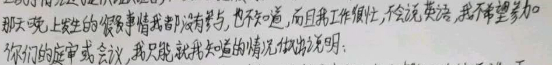 在“事实情况说明”的第一页,尿检官武某致信仲裁法庭(既CAS)、国际泳联,他陈述说:“我工作很忙,不会说英语,我不希望参加你们的庭审或会议,我只能就我知道的情况做出说明。”在第二页,他签上了自己的姓名,落款时间为2019年10月16日。