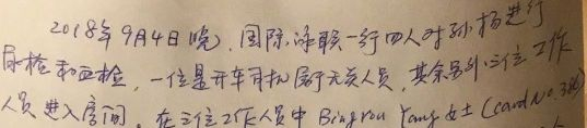 该文件中,陈述完三名工作人员的身份信息之后,“他们仅仅只有Bingrou Yang(注:主检官)提供了反兴奋剂资格证明,其余两位均无法提供反兴奋剂检查官资格证明和相关授权证明,所以无法完成本次尿检和血检。(已采血样本也不能带走)”