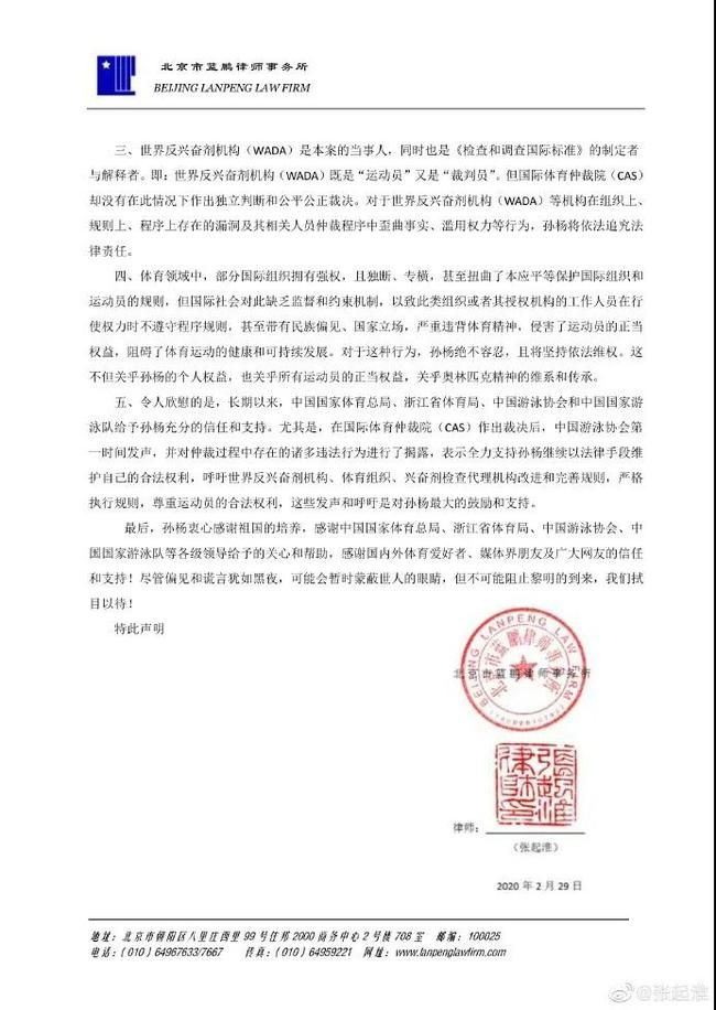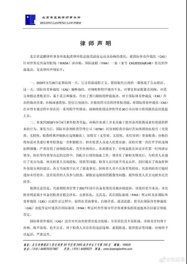 [文眼]在孙杨禁赛结果出炉之后,他的律师团队受到质疑。刘姓律师受到了孙杨母亲的指摘,而张起淮律师团队则受到了同行的质疑。本文仅就张起淮律师团队的声明及说法展开讨论。