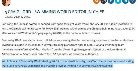 整个孙杨兴奋剂违规事件中,英国著名游泳记者克雷格-洛德“阴魂不散”。他是全球第一个爆料孙杨涉嫌暴力抗检的记者。在此次事件,克雷格-洛德透露,WADA在他的提醒下知会了中国游泳协会,而后中国游泳协会才出台了作废文件。