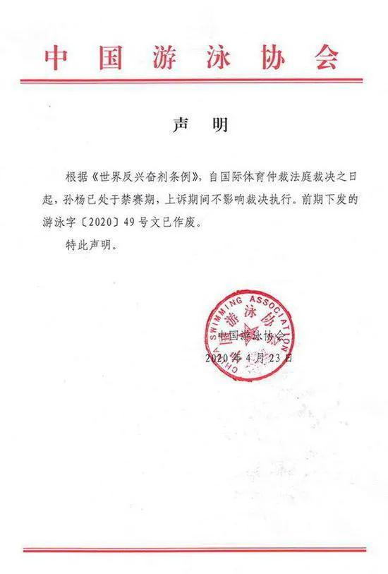 央视记者率先披露,孙杨并不在国家集训队名单之中。不过,《北京青年报》马上给予了反驳。当49号文件见诸媒体之后,中国游泳协会拨乱反正,发表声明表示49号文件无效,将孙杨拒之国家集训队大门之外。