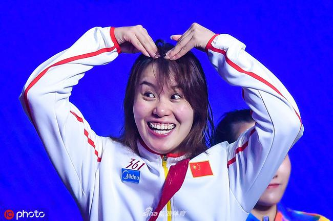 2013年至2017年三届游泳世锦赛,她在50米仰泳中斩获1金2银,在世界范围内展现了极强的竞争力。耀眼成绩的背后,傅园慧身上也不得不承担起巨大的责任和压力。