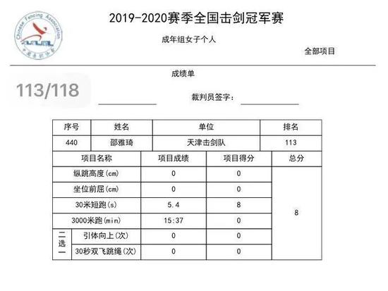 击剑F选手是一名参加过奥运会的老将,看到体能测试标准,TA就望而却步,连名都没有报。
