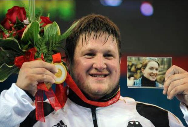 在随后的颁奖仪式上,施泰纳的脖子上挂着金牌,一只手捧着鲜花,另一只手握着亡妻的照片。奥运最高领奖台上硬汉的热泪和柔情,感动了世界。