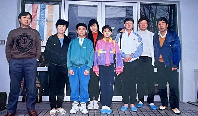 王发成与北京业余体校的小朋友合影,右2为张家齐,当时5岁