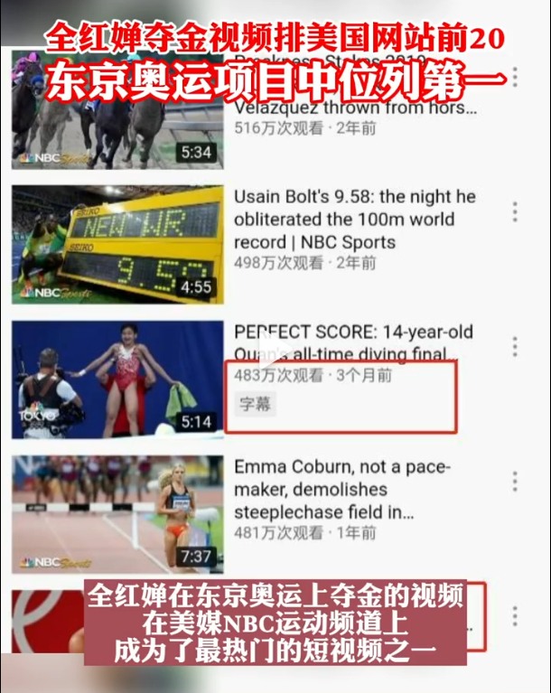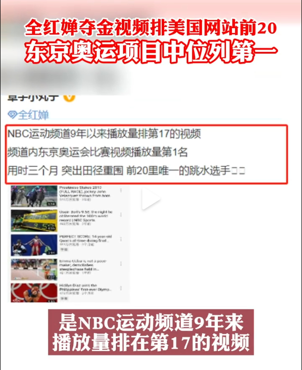 全红婵夺金视频火遍外网 NBC东京奥运相关排名第1