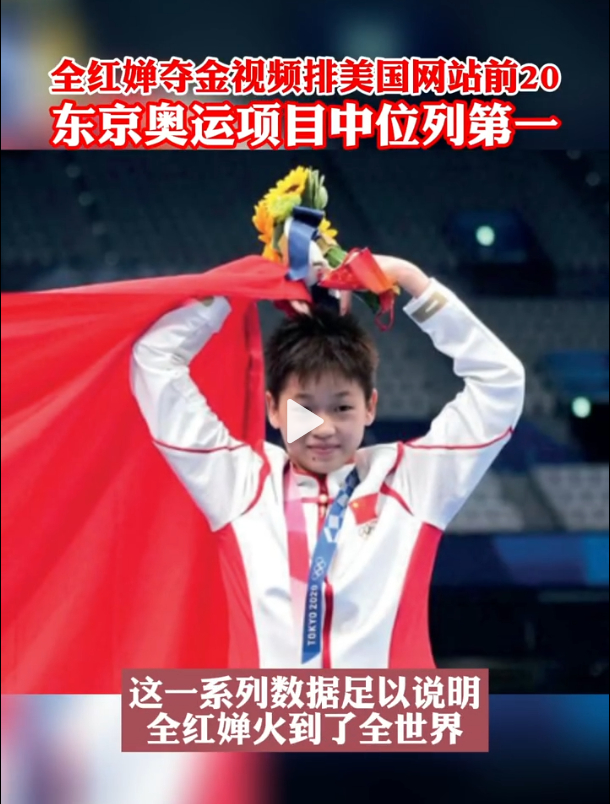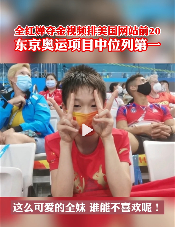 凭借出色的成绩和可爱的形象,全红婵迅速成为全民偶像,而且其影响力已经不仅限于国内,而是已经火遍全世界。近日,有媒体报道,她在东京奥运会上的夺金视频,在美国NBC运动频道上成为了最热门的短视频之一,是9年来播放量排名第17位的视频,在所有关于东京奥运会的视频中播放量排名第一,并且是排名前20名中唯一的跳水选手。
