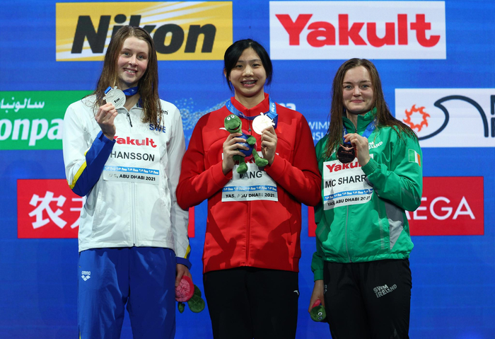 这是继首届短池世锦赛戴国宏夺冠后,中国女选手再次拿到100米蛙泳冠军。