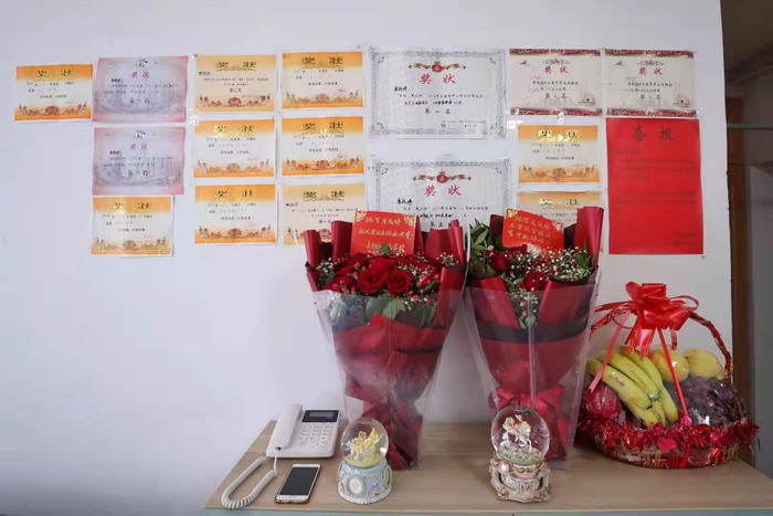 唐钱婷家中的荣誉墙。 图片来源:王佳斌