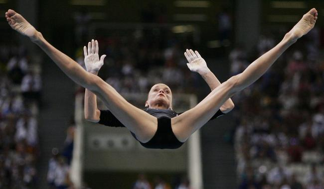 下面我要说说霍尔金娜那无可复制超级成功的职业生涯了。一个女子体操运动员有1.64米的身高,这简直就是体操领域的巨人身高,她要比大多数竞争对手的身高平均高出20公分。1995年也就是16岁的时候霍尔金娜就拿到了世锦赛高低杠的金牌,就此掀开了自己高低杠女王的辉煌之路。此后,霍尔金娜在1996年、1997年、1999年、2001年又四次获得高低杠金牌。1996年和2000年两届奥运会,霍尔金娜连夺高低杠金牌,成为了这个项目上当之无愧的世界第一人。