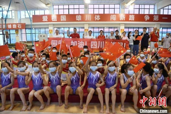 四川体育职业学院的师兄弟、教练们为邹敬园加油。 张浪 摄