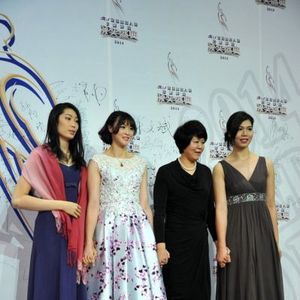 从左至右:朱婷、惠若琪、郎平、徐云丽