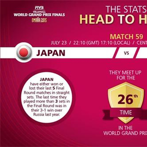 北京时间7月24日清晨,2015年世界女排[微博]大奖赛总决赛在美国奥马哈展开第二轮的争夺,替补阵容主打的中国队迎战日本队。以下为本场比赛双方的首发: