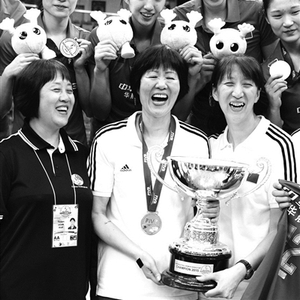 随后,从惠若琪那里接任队长的曾春蕾高高举起冠军奖杯,这个奖杯凝聚着每一个女排人的心血。