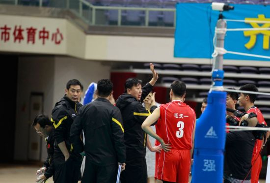 2015年11月22日下午14:00,2015-2016全国男子排球联赛“英科医疗”淄博赛区比赛在淄博市体育中心综合馆举行,山东体彩男子排球俱乐部坐镇主场2比3惜败于八一男子排球队。赛后,双方主教练和队员对比赛进行了点评。