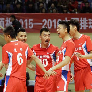 河南天冠男排庆祝得分