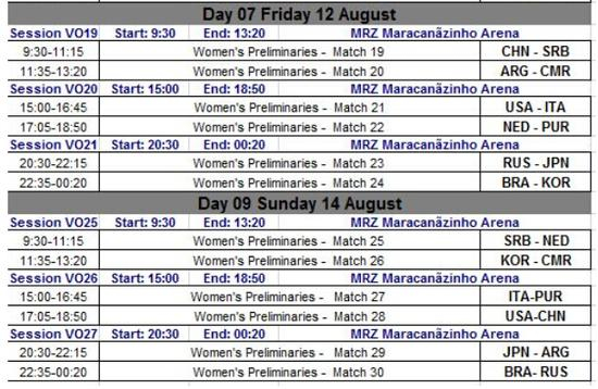 附:2016年里约奥运会女排小组赛赛程(北京时间):