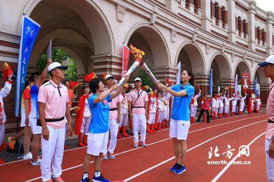 天津北方网讯:8月8日,第十三届全运会火炬传递起跑仪式暨2017“全民健身日”活动启动仪式在民园广场举行。全运圣火从这里出发,将传遍天津16个行政区,把“传递梦想,共享健康”的主题精神撒播津沽大地。奥运冠军魏秋月,是本次火炬传递的第一棒火炬手,她的起跑,也正式开启了全运火炬传递。