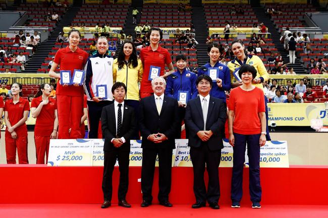 在单项奖颁奖中,郎平作为颁奖嘉宾为单项奖获奖队员颁奖。冠军中国女排共有两人进入最佳阵容,朱婷不仅荣获最佳主攻,还将最有价值球员奖收入囊中,袁心玥收获最佳副攻。亚军巴西女排副攻卡罗尔和接应坦达拉也入选最佳阵容。季军美国女排主攻拉尔森同样入围。获得第五名的东道主日本队同样有两人入选,自由人井上琴绘以及二传富永获奖。