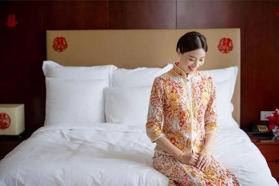 过了几道难关后,袁灵犀终于被放进屋,给新娘穿上了婚鞋,在亲朋好友的见证下深情亲吻。然后两人按照习俗,向双方父母敬茶。