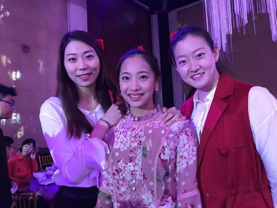 姑娘们一落座就开始各种拥抱、交谈,各种组合拍照。