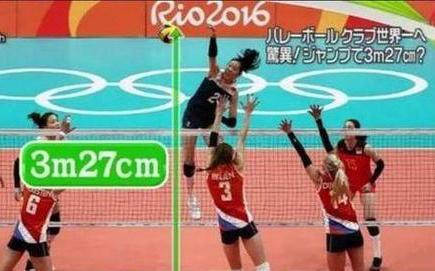 身高1.98米的朱婷,被日本媒体报道其扣球高度达到3.27米,足以超过旅游大巴。这一高度最近再被改写,如今已经达到了3.30米,仅次于古巴女排传奇球星路易斯的3.40米。